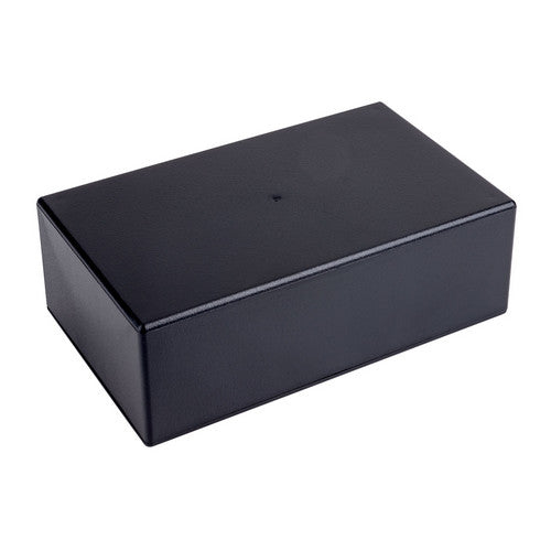 A multi-purpose enclosure moulded in textured, high impact black ABS which can be easily drilled or punched. External dimensions: 157.8 x 95.5 x 53mm Lid is retained by 4 self-tapping screws (supplied). Ideal for electronic projects and storage. Attractive matt surface finish. UL94-HB flame resistance rating. Ingress protection: IP20. Includes PCB guides for board insertion.