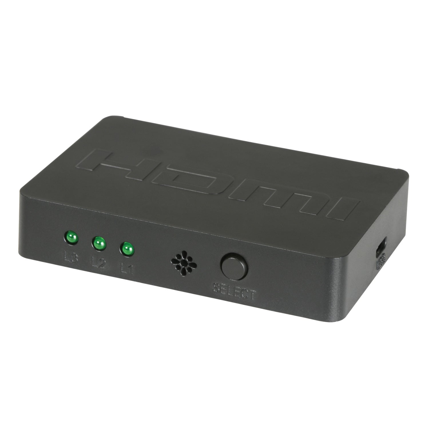 This mini HDMI switch allows a single display to be connected to up to 3 HDMI sources and selected using the IR remote control or selection button on the unit. Front LEDs keep you informed as to which of the inputs is live at any one time.