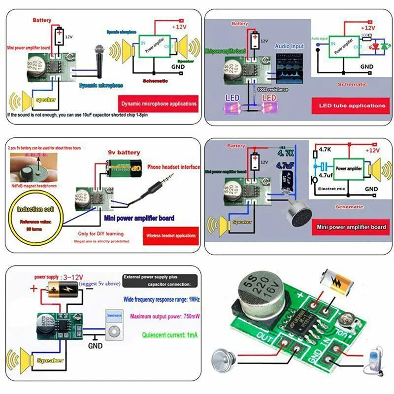 LM386 Mini Micro Audio Power Amplifier Board Specifications: