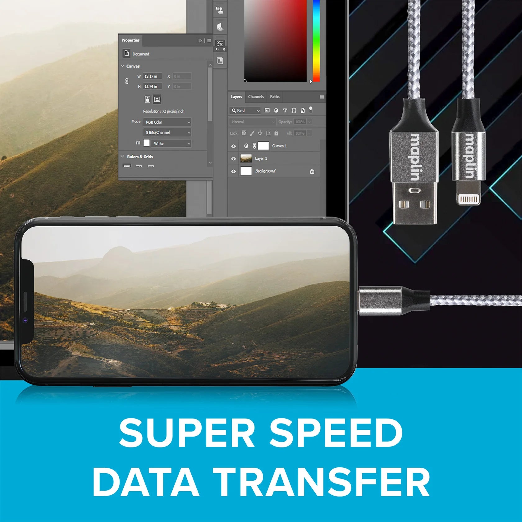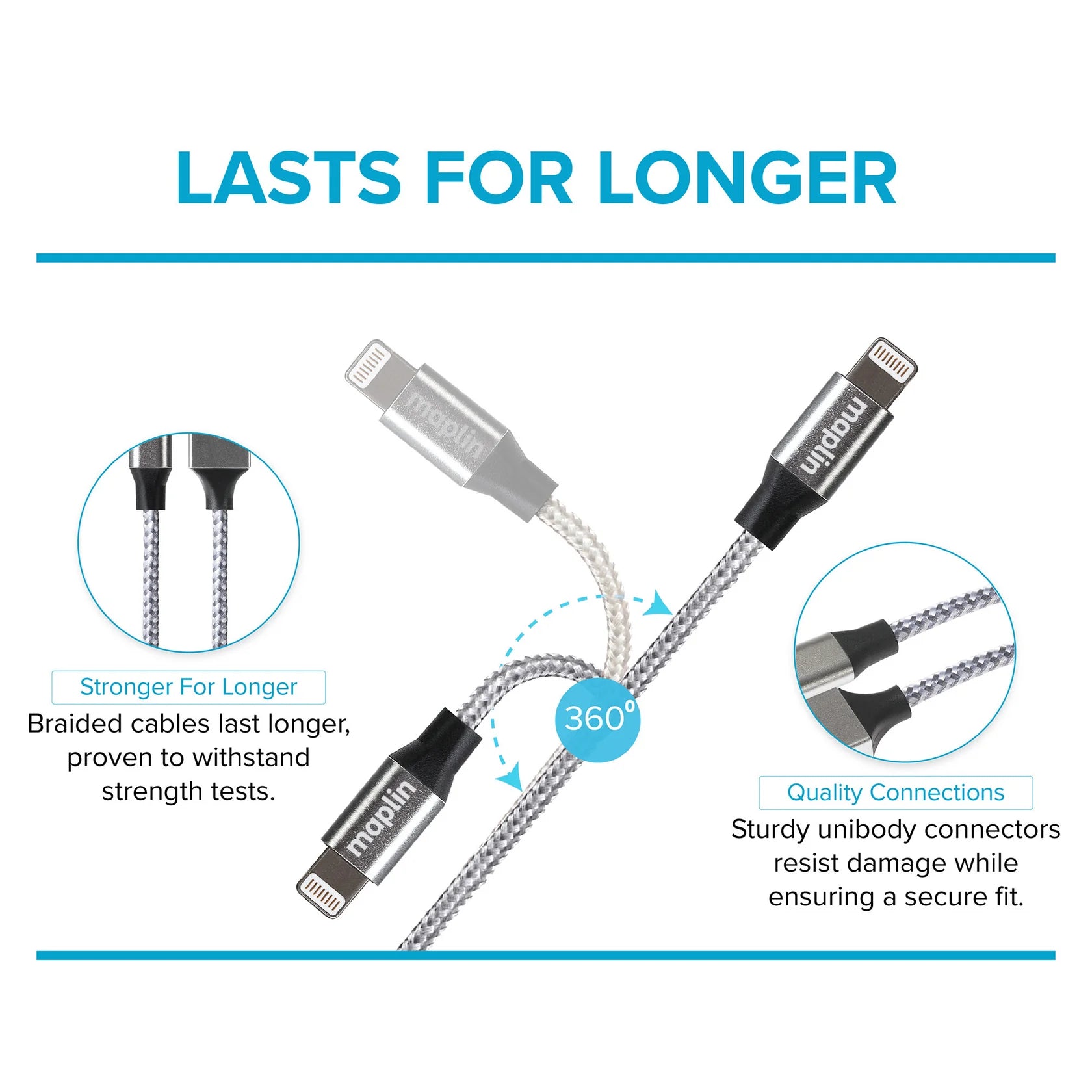 Maplin USB-A to 8-Pin Connector Cable for Apple Devices 12W - 3m Silver