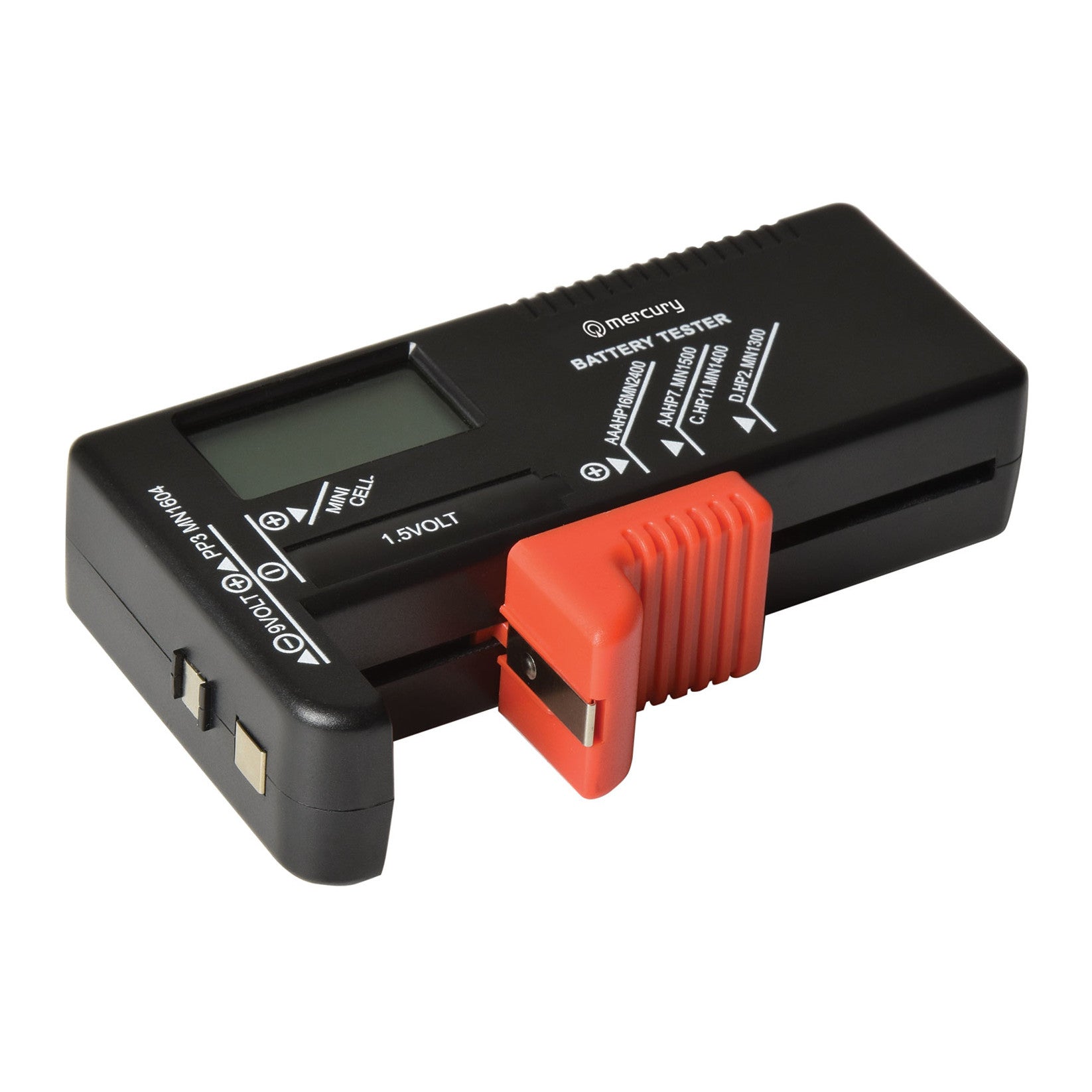 Handy, compact battery tester with an easy-to-read LCD display. Suitable for testing most household batteries and button cells.