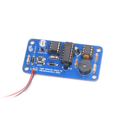 The Light Alarm kit by MitchElectronics is a DIY electronics kit that lets you build an alarm that triggers upon detecting light.