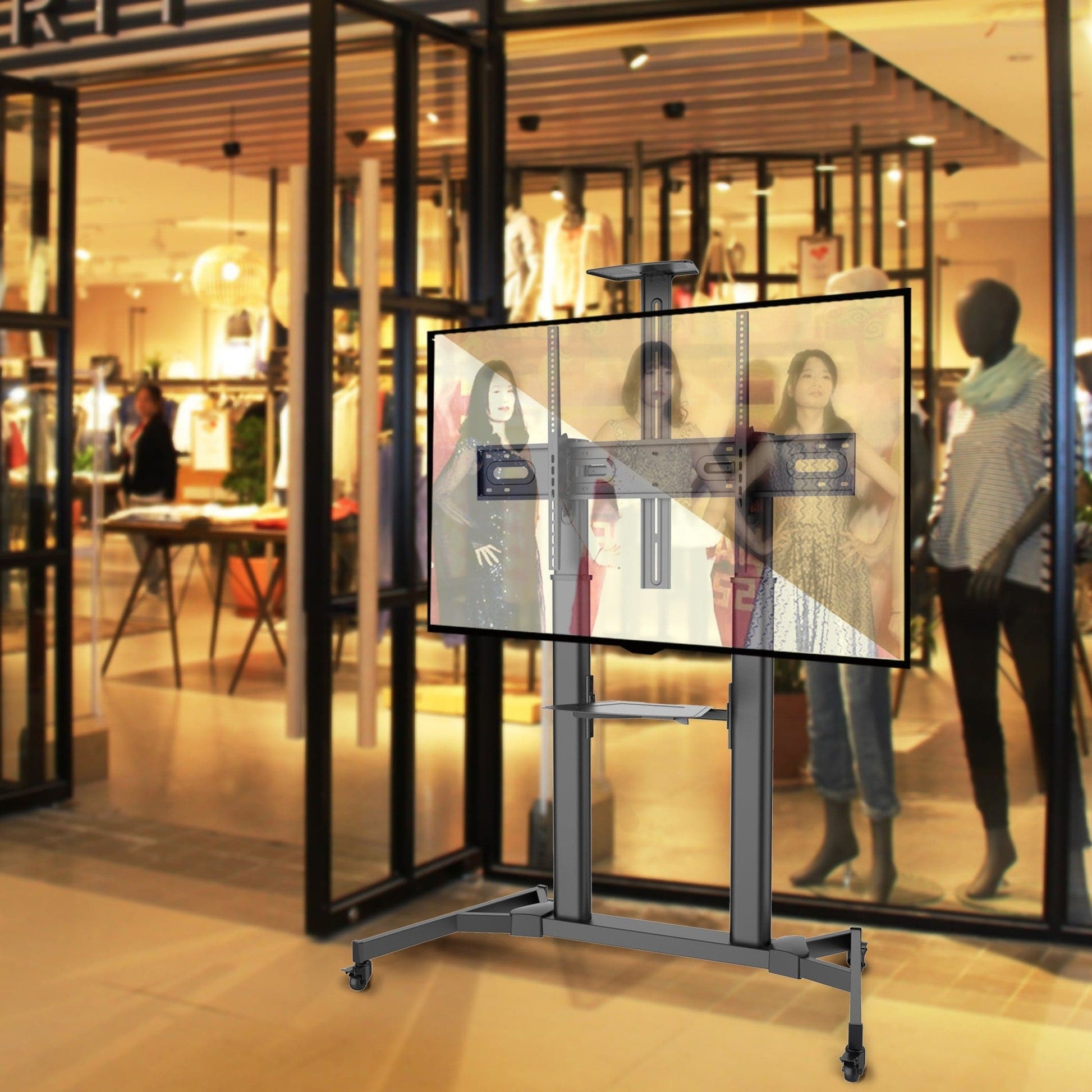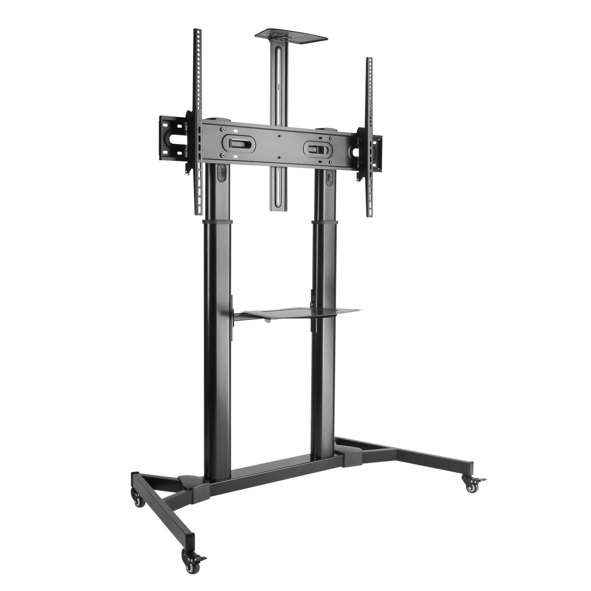 This portable TV trolley is suitable for almost all large televisions between 60" - 100". Supporting TVs up to 100kg, this ProperAV Mobile TV Trolley Stand on Wheels for 60" - 100" Screens (100kg Capacity / VESA Max. 600x1000) provides additional support for accessories on its adjustable AV shelf.
